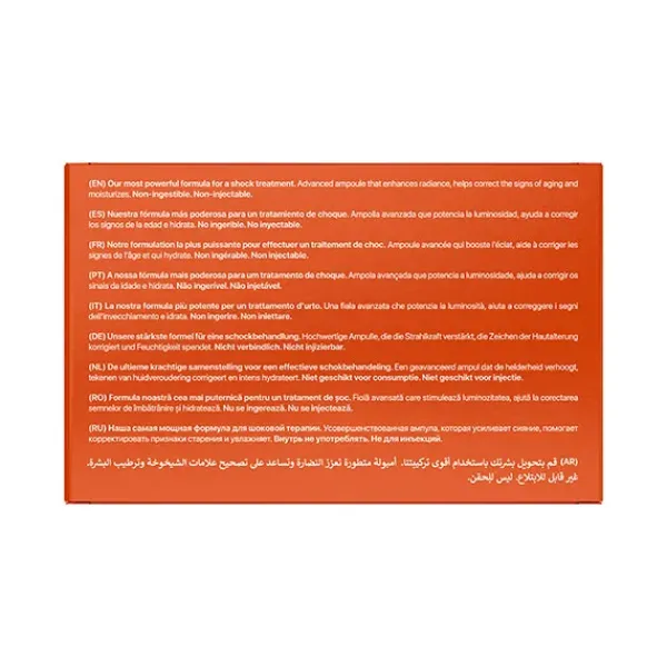 Ampolla avanzada con un complejo del 30% de Vitamina C, formado por 2 formas distintas de este ingrediente para unos resultados elevados a la máxima potencia. Potenciada con Vitamina B5, ayuda a retener la humedad y fortalece la barrera de la piel.