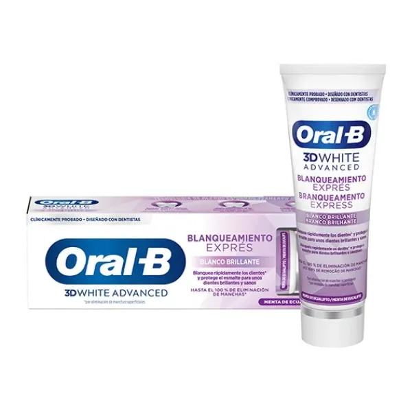 La pasta dentífrica Oral-B 3D White Advanced Express Whitening cuenta con la tecnología de blanqueamiento de Oral-B.