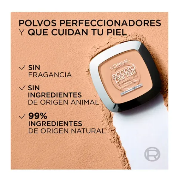Polvos Compactos Accord PerfectL’Oréal París revoluciona el mundo de los polvos de maquillaje con su gama Accord Perfect. El polvo se funde completamente con tu textura y color de piel, dejando un acabado 100% natural gracias a su cobertura variable. Unifica y cubre imperfecciones sin dar un efecto exagerado. Se contiene en un envase práctico relleno de polvos ultra finos, suaves y ligeros e incluye una esponja aplicadora y un espejo.Lista y preparada en cualquier sitio con Accord Perfect.