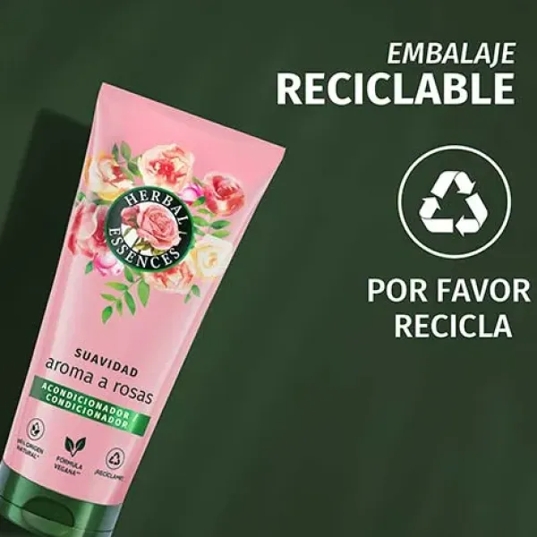 Herbal Essences Acondicionador Suavidad Aroma a Rosas ayuda a trasformar el pelo seco en un pelo rico y sedoso. Déjate envolver en su fragancia floral. Al mezclar nutrientes de origen vegetal infusionados con esencia de rosa auténtica, cosechada a mano en Grasse, en el sur de Francia, obtenemos una fórmula vegana, para conseguir un pelo suave e irresistible día tras día. Nuestra lujosa y cremosa fórmula se puede usar como acondicionador con aclarado, o simplemente puedes no aclararlo