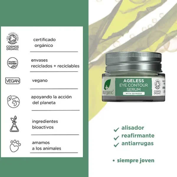 Con una infusión de algas marinas orgánicas y extractos marinos para combatir las líneas finas y las arrugas y lograr una piel naturalmente más suave y firme