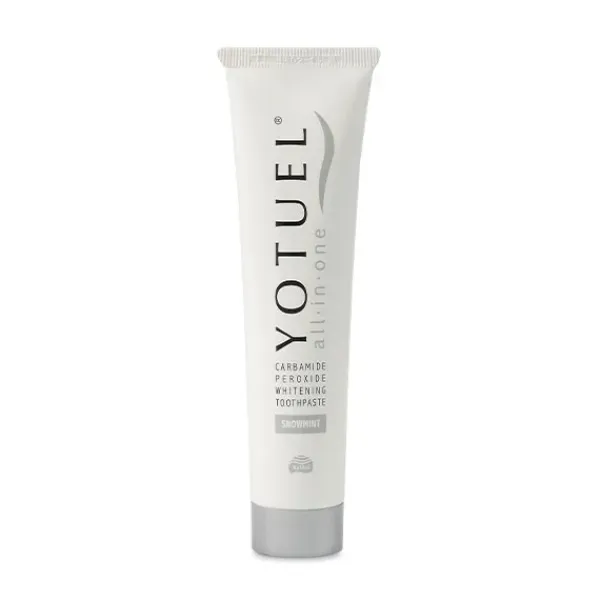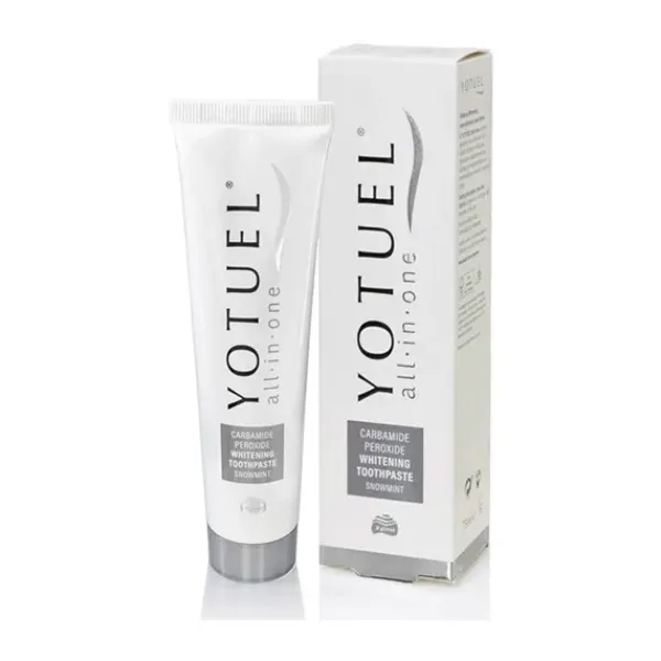 – Yotuel All In One es el primer dentífrico capaz de eliminar manchas externas e internas del esmalte gracias a su contenido en Peróxido de Carmabida de uso habtual en tratamientos profesionales.
