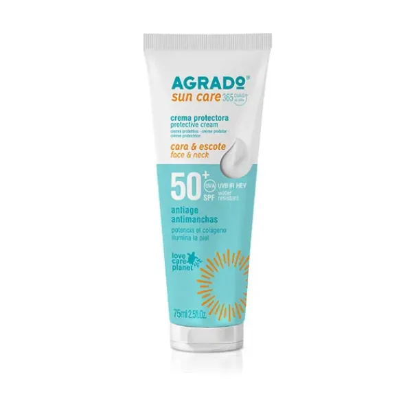 Crema facial protectora antimanchas y antiedad con protección muy alta SPF50+.
