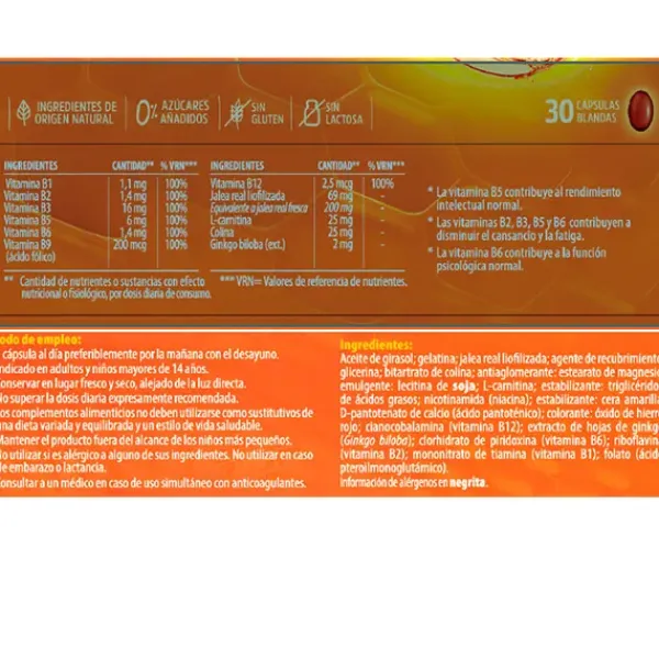 Apiserum Intelecto es un complemento alimenticio a base de jalea real de la máxima calidad (2% HDA garantizado), 7 vitaminas, aminoácidos y ginkgo biloba para una máxima eficacia.