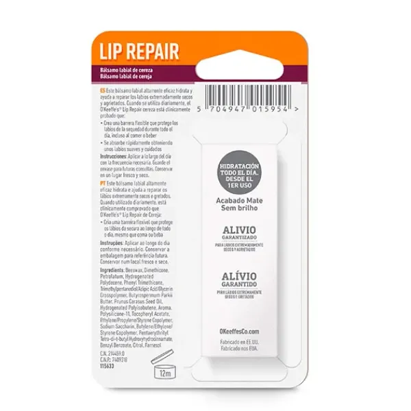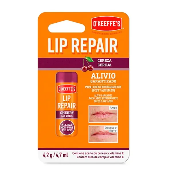 La fórmula altamente efectiva de O’Keeffe’s Lip Repair alivia, hidrata y ayuda a reparar los labios extremadamente secos y agrietados para dejarlos suaves, tersos y saludables durante todo el día.