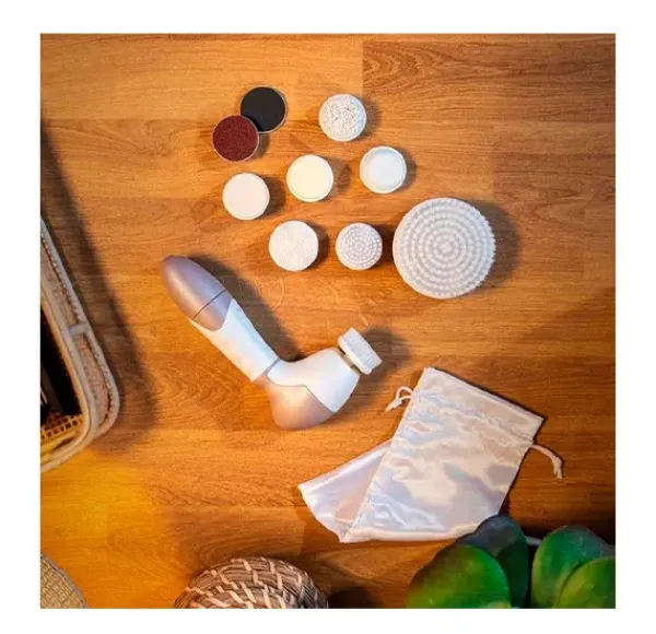 Cepillo facial con 9 cabezales para cara, cuerpo y pies con giro de 360º, un diseño ergonómico y con bolsa de viaje.