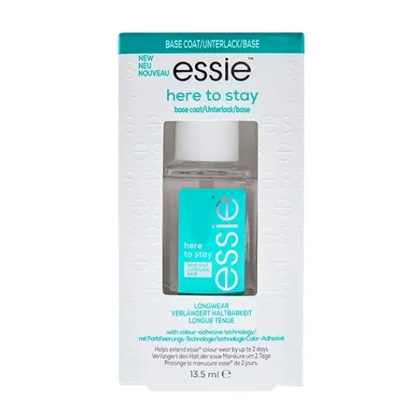 La base de Essie "Here to stay" es la base de larga duración que hace que tu manicura dure 2 días más.
