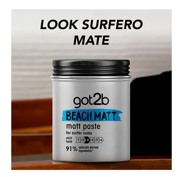 La Pasta Mate Look Surfero de got2b es una pasta texturizante con efecto mate y sujeción media, que te da un auténtico estilo surfista.