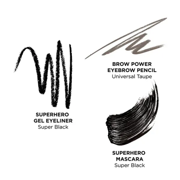 - Superhero No Tug Gel Eyeliner – Lápiz Delineador de Ojos: Es un lápiz delineador de ojos de aplicación súper suave, con súper pigmentación y súper resistencia con el paso de las horas.