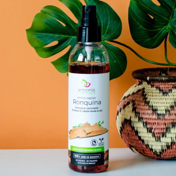La quina tiene propiedades astringentes, cicatrizantes y antisépticas, que hacen de la Ronquina un excelente tónico capilar que fortalece el cabello desde la raíz y tonifica el cuero cabelludo, dando vitalidad y vigor al cabello.