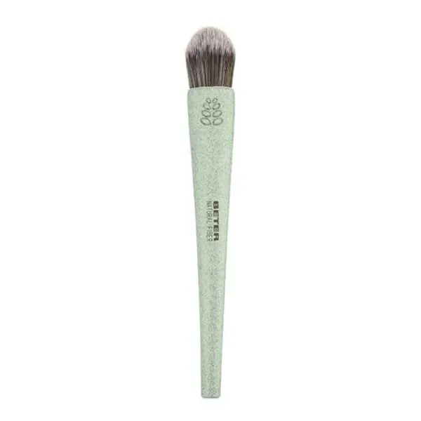Brocha Para Maquillaje Fluido Mango elaborado con un material natural a base de fibra de trigo, 100% biodegradable. Pelo sintético extrasuave. Pack en cartón certificado FSC.