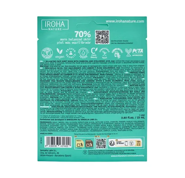 La mascarilla tissue de carbón te ayudará a detoxificar tu piel y purificarla, a la vez que refresca y reconforta para que sientas la piel limpia suave e iluminada, en solo 15 minutos.