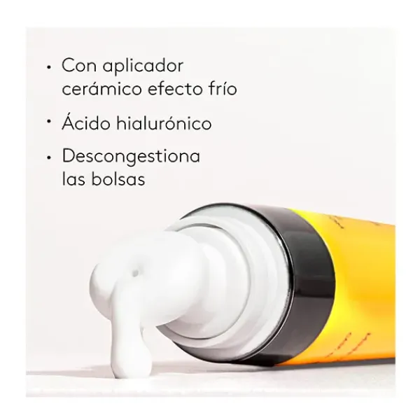 Crema de triple acción con aplicador cerámico efecto frío, que reduce visiblemente la apariencia de las bolsas y las ojeras por su alto contenido en cafeína. Aporta una hidratación intensa gracias al ácido hialurónico y sus ingredientes naturales consiguiendo un efecto buena cara. Este contorno de ojos ultrahidratante, ideal para todo tipo de pieles y primeras arrugas, descongestiona las bolsas y borra las ojeras.