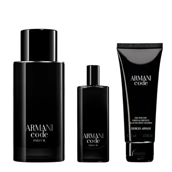 • Armani Code Le Parfum 75 ml y tamaño viaje 15 ml: una reinterpretación de la icónica fragancia Armani Code, mucho más intensa pero manteniendo su distintivo olfativo. La fragancia posee mucho movimiento gracias a sus vibrantes notas cítricas de salida con toques de Vert de Bergamote y Corazón de Bergamota, ambos de la región de Calabria. Para realzar el efecto, la fragancia cuenta con un corazón de Salvia, obtenida de la Provenza. El sofisticado corazón de la fragancia se enciende con la fusión de las notas de Iris de Marruecos, que aportan una renovada sensibilidad. E inspirándose en la herencia de la fragancia original, las notas de fondo se caracterizan por el poderoso Absoluto de Haba Tonka de Brasil junto al corazón de madera de cedro de Virginia, Estados Unidos.