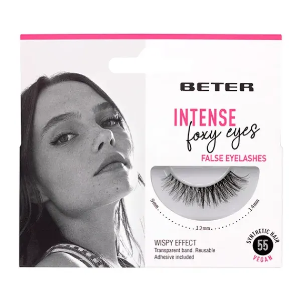Pestañas postizas con diseño de capas entrelazadas más largas en el extremo exterior y cortas en el interior.