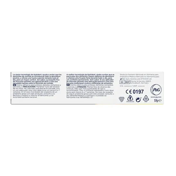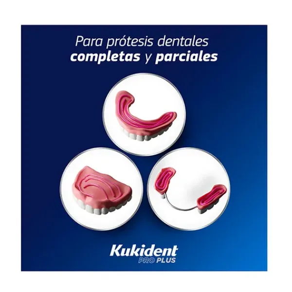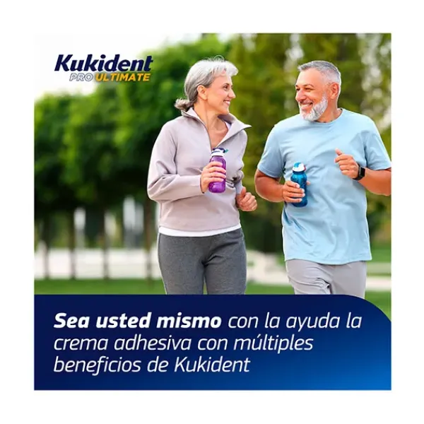 La mejor tecnología de Kukident: ayuda a evitar que las partículas de comida se introduzcan bajo la dentadura postiza, y ofrece una fuerte sujeción durante todo el día, para una mayor comodidad.