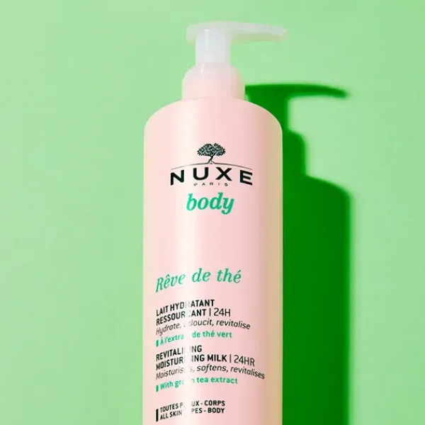 Esta leche sedosa hará que se derrita de placer con su suavidad irresistible: el Té verde se asocia a un complejo de azúcares 100 % de origen natural para proporcionar una hidratación 24 H*. Su textura fresca y fundente penetra con rapidez, permitiendo vestirse inmediatamente.