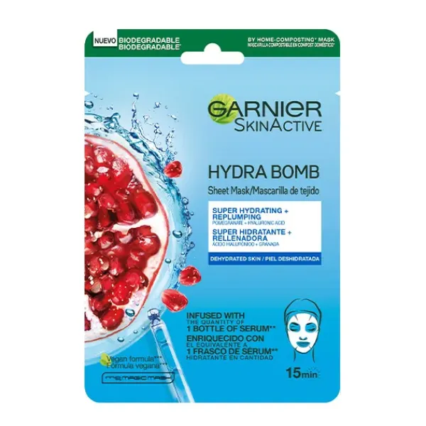 La mascarilla Hydra Boom Hidratante Energizante de Garnier es una máscara de tejido hidratante.