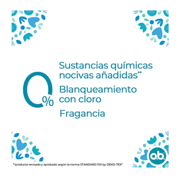 Prueba OB Tampones ProComfort Normal con ranuras Fluid-Lock para protección contra fugas bloqueadas, que guían eficientemente el fluido hacia el interior del tampón.