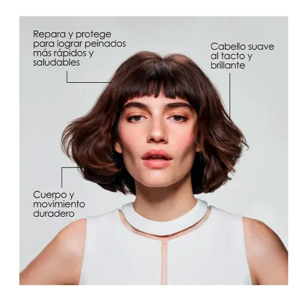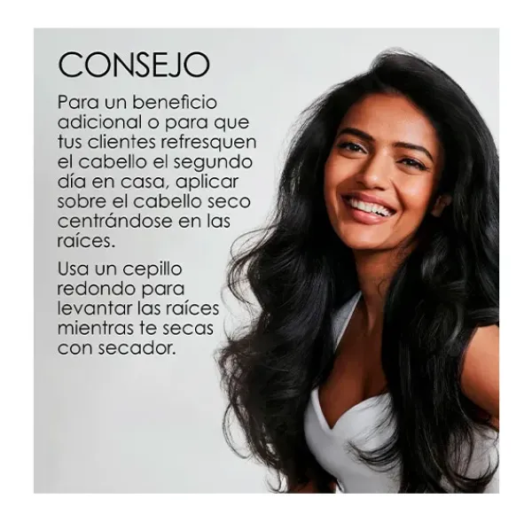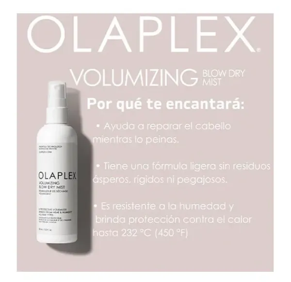 Mejora tu rutina de peinado con el reparador Volumizing Blow Dry Mist. Protege tu cabello de daños mientras lo peinas con el poder de los polímeros avanzados, la tecnología de construcción de enlaces OLAPLEX, los lipopéptidos de extracto de bambú y los péptidos de guisante para un protección más rápida y saludable.