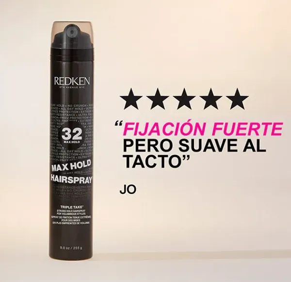 Max Hold Hairspray aporta una fijación y control de larga duración sin la sensación crujiente/aspera de las lacas tradicionales.