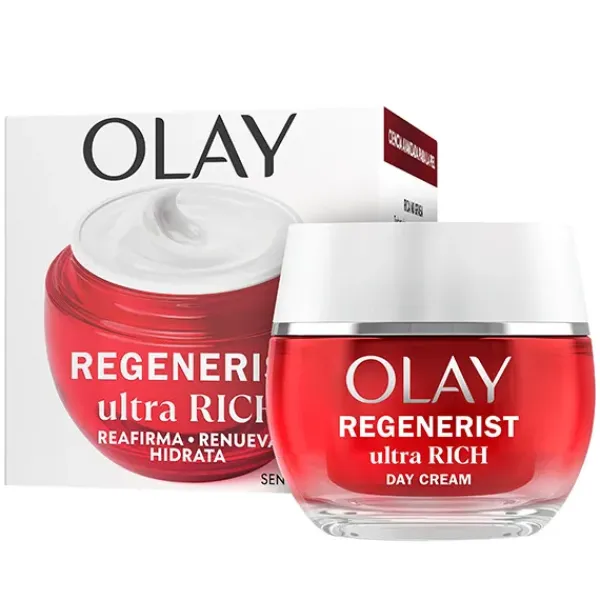 Renueva la luminosidad natural de tu piel con la crema de día Olay Regenerist Ultra Rich .