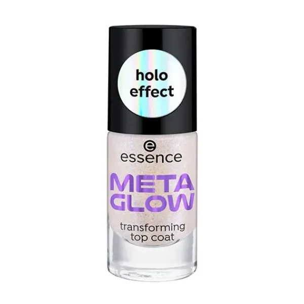 ¿Estás buscando un top coat que convierta tus uñas en una obra de arte espectacular? ¡Entonces el top coat transformador META GLOW de essence es tu complice! Su brillo semitransparente plateado y azul duocromático está inspirado en el metaverso y su efecto instantáneo es llamativo con todos los esmaltes de uñas.