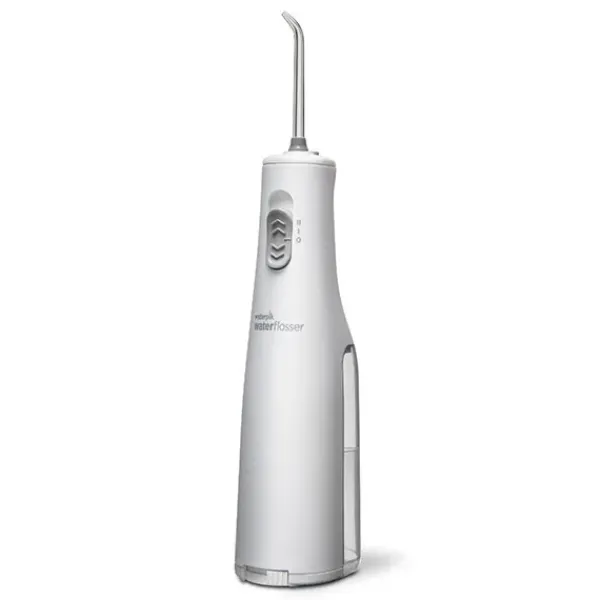 Presenta un diseño más ligero y portátil y gracias a su funcionamiento a pilas, no necesita ser enchufado a la corriente por lo que es ideal para baños con espacios reducidos o para su uso fuera de casa. El irrigador Waterpik® Inalámbrico Express WP-02 es un modelo totalmente hermético e impermeable, lo que permite usarlo incluso en la ducha. Además, tiene dos posiciones de control de presión que facilitan personalizar la intensidad de la irrigación. Incluye tres pilas AA cuyo repuesto deberá realizarse cada uno o dos meses dependiendo del tiempo y el modo de uso.