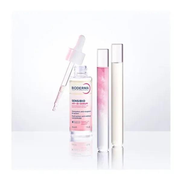 Sensibio AR+ Bi-serum es el 1er* sérum de doble acción dermatológica mundial anti-rojeces y reafirmante.