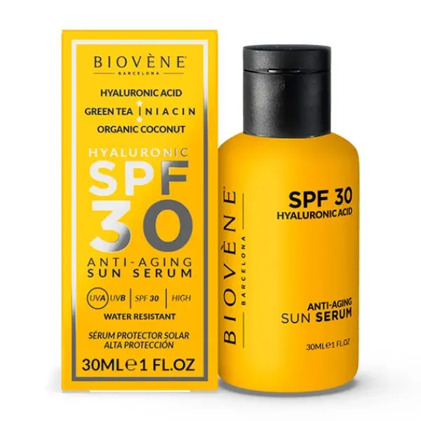 Proteja tu piel con el suero de protección solar portátil más conveniente hecho con ingredientes extremadamente humectantes y antienvejecimiento, ácido hialurónico, niacinamida y coco orgánico.