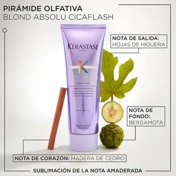 Blond Absolu Cicaflash de Kérastase es un acondicionador fortificante intenso que combina la potencia reparadora de una mascarilla con el acabado ligero de un acondicionador.