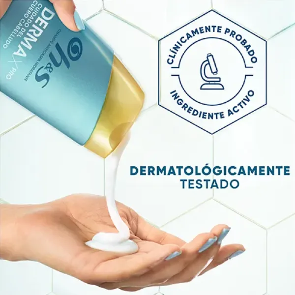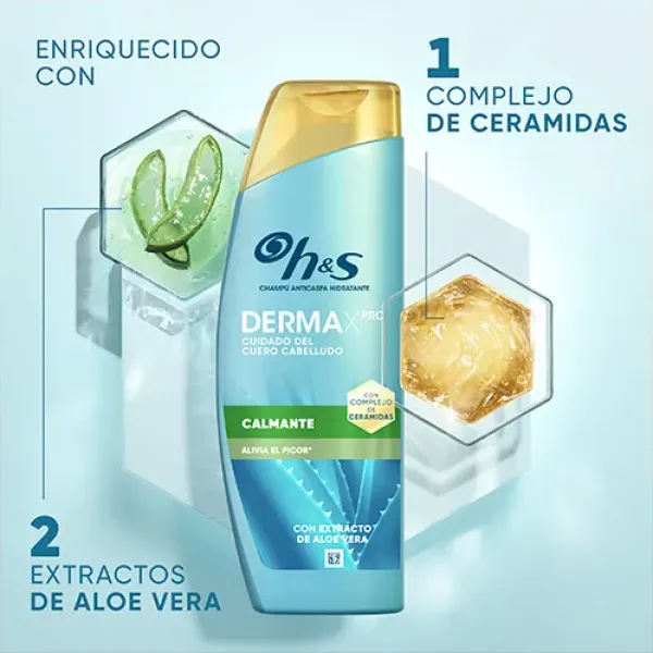 ¿Sabías que el cuero cabelludo seco necesita algo más que hidratación? El champú anticaspa DERMAXPRO de H&S ayuda a reforzar la barrera natural de la piel y restablece el equilibrio natural del cuero cabelludo. Nuestra fórmula está enriquecida con ingredientes para el cuidado de la piel, como aloe activo, extracto de cactus y vitamina E, y potenciada por un ingrediente activo clínicamente probado: la piroctona olamina. ¿El resultado? Un cuero cabelludo hidratado y sin caspa* * Caspa visible, con un uso regular.
