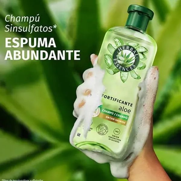 Sumérgete en un oasis de hidratación. Herbal Essences Champú Fortificante con Aloe ayuda a revitalizar el pelo seco y aporta una sensación de equilibrio gracias a su delicado aroma a jazmín. Al mezclar nutrientes de origen vegetal infusionados con aloe del sur de México, obtenemos una fórmula vegana y sin siliconas ni sulfatos libre de tensioactivos sulfatados. Descubre un pelo hidratado, suave y sedoso. Al usar champú y acondicionador sin aclarado