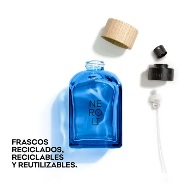 Hecho con vidrio reciclado, reciclable y reutilizable de por vida, gracias al nuevo sistema de rosca. Nuestro tapón es 100% de madera FSC y 0% plástico. Etiqueta de papel FSC procedente de bosques bien gestionados. Un diseño atemporal y único para toda la colección hecho en España.