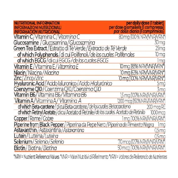 DEFENCE está formulado por nuestros científicos y nutricionistas para ofrecer una combinación única de 16 ingredientes activos que incluyen extracto de té verde, astaxantina, vitaminas y minerales para una buena absorción y biodisponibilidad.