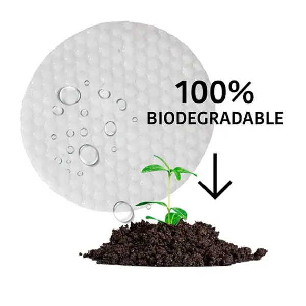 El material de los discos finos de algodón impregnados con tónico es biodegradable y su formulación no contiene alérgenos.