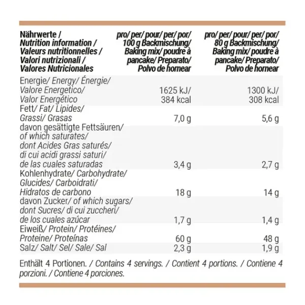 Con 6 veces más proteína que las mezclas de tortitas convencionales, la mitad de carbohidratos y menos azúcar.