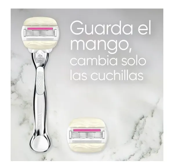 La maquinilla Venus está diseñada específicamente para el cuerpo femenino. Cuenta con 5 hojas para una depilación suave, apurada y duradera. Los recambios para maquinilla vienen equipados con bandas hidratantes de Olay que liberan aceites corporales y una ligera fragancia a sugarberry. Con un diseño pivotante que se ajusta a los contornos del cuerpo. Todos los recambios Venus son compatibles con todos los mangos Venus (excepto Simply Venus y Venus para vello púbico)