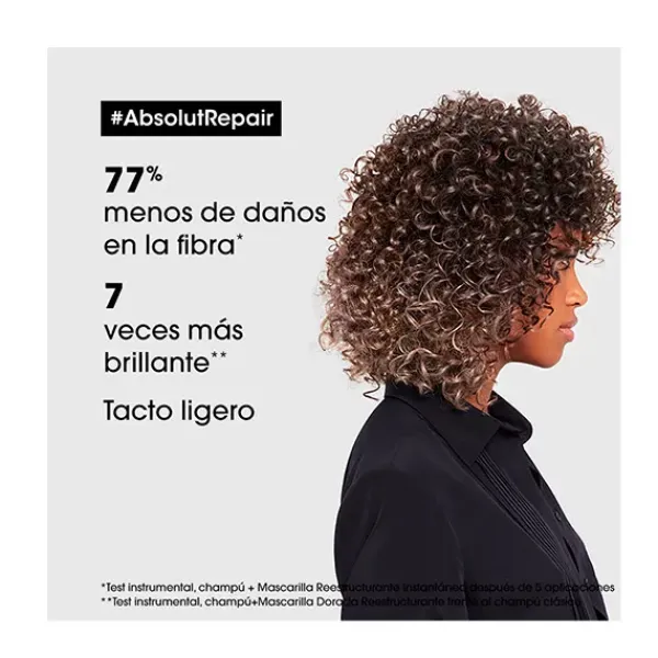 El acondicionador Absolut Repair reconstructor instantáneo, nutre y repara instantáneamente el cabello dañado, fortaleciéndolo visiblemente, aportando suavidad y brillo, pero con un acabado ligero, sin peso.