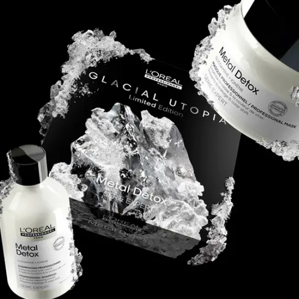 Serie Expert Glacial Utopía Duo de Metal Detox, la gama estrella para evitar la rotura del cabello y mantener el color perfecto. Champú + Mascarilla: