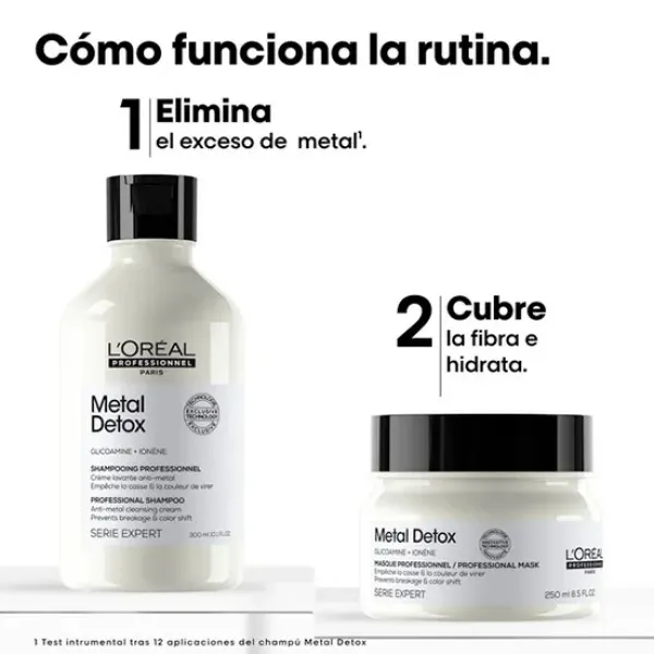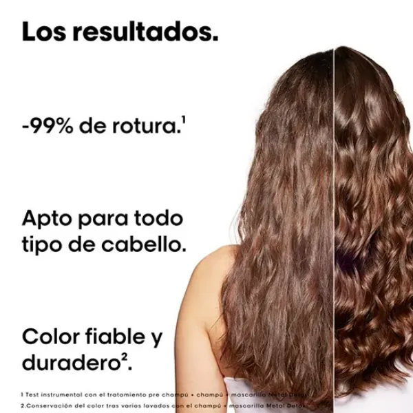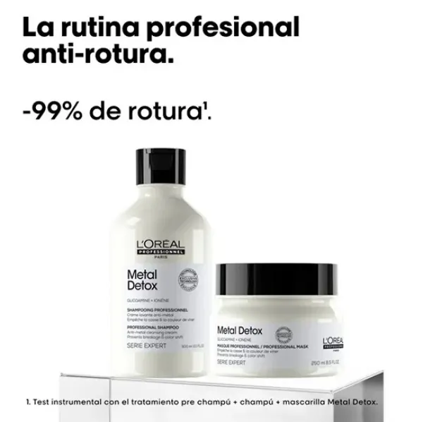 Mascarilla Metal Detox de L’Oréal Professionnel, diseñada para todo tipo de cabello, coloreado y decolorado. Esta mascarilla tiene la capacidad de desintoxicar el cabello, protegiéndolo contra partículas de metal y manteniéndolo en óptimas condiciones. Obtén un cabello más fuerte, más brillante y protegido contra los daños, el calor y el metal con esta innovadora mascarilla de L’Oréal Professionnel.