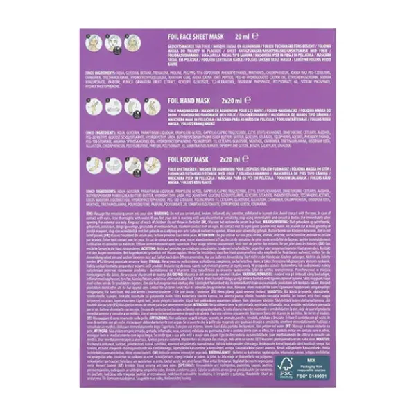Este juego de mascarillas completo de Sence contiene tres mascarillas de aluminio pretratadas para manos, pies y rostro.