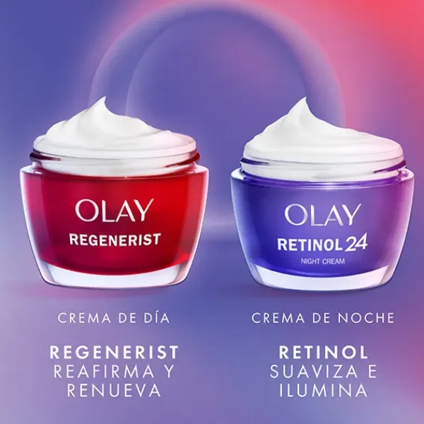 CREMA DÍA: renueva la luz natural de tu piel con la crema de día Olay Regenerist, el producto más hidratante de Olay. Su fórmula hidratante enriquecida con vitamina B3 (niacinamida) y péptidos de Olay penetra profundamente en la superficie de la piel y ayuda a optimizar su renovación celular. Hidrata profundamente durante 24 horas, renueva visiblemente y reafirma la piel. Nuestra crema hidratante y anti-edad es apta para todo tipo de pieles, incluidas normal, seca y grasa. Usa la crema de día Olay Regenerist durante 28 días. Renueva visiblemente el aspecto de la piel.
