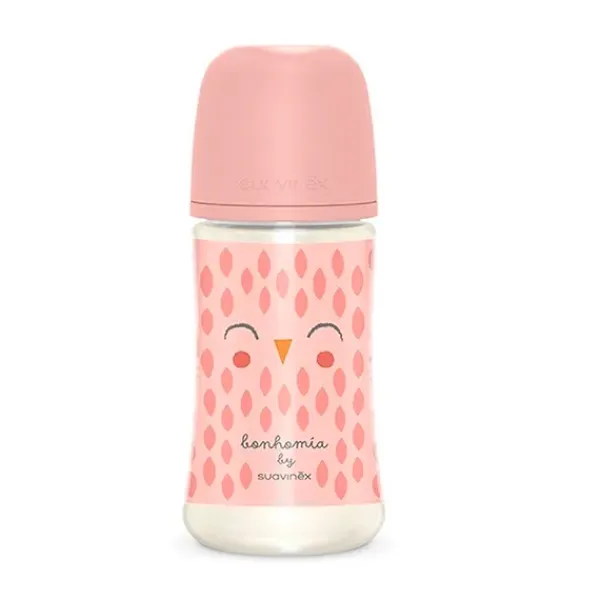 Biberón de 270 ml de Bonhomía, la nueva colección Premium de Suavinex. Biberón con Tetina Fisiológica SX Pro de Silicona, de Flujo Medio, +3 Meses.