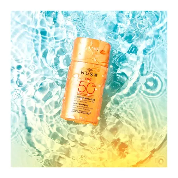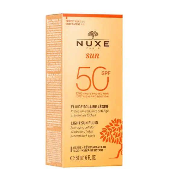 – Este Fluido Ligero Alta Protección SPF50 NUXE Sun protege la piel de los rayos del sol y previene el fotoenvejecimiento celular.