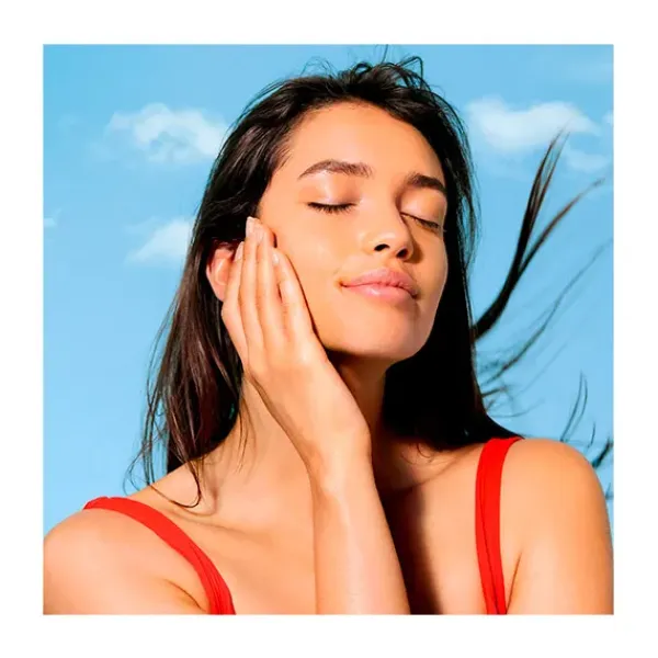 – Enriquecido con extracto de Lirio Acuático, su fórmula resistente al agua refuerza la barrera cutánea para preservarla de la deshidratación y sublima el bronceado.