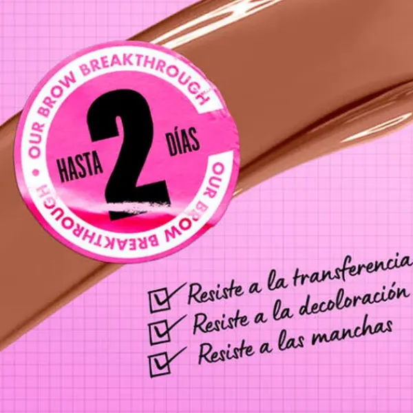 Este avance vegano para cejas es resistente a la transferencia, a la decoloración y a los borrones, con una duración de hasta 2 días.