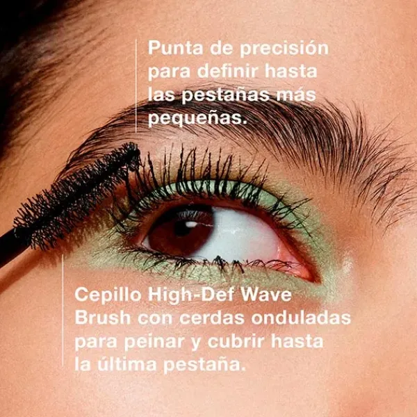 – El innovador cepillo High-Def Wave Brush tiene cerdas onduladas para peinar y cubrir hasta la última pestaña, además de una punta de precisión para atrapar y definir fácilmente hasta las pestañas más pequeñas exteriores.