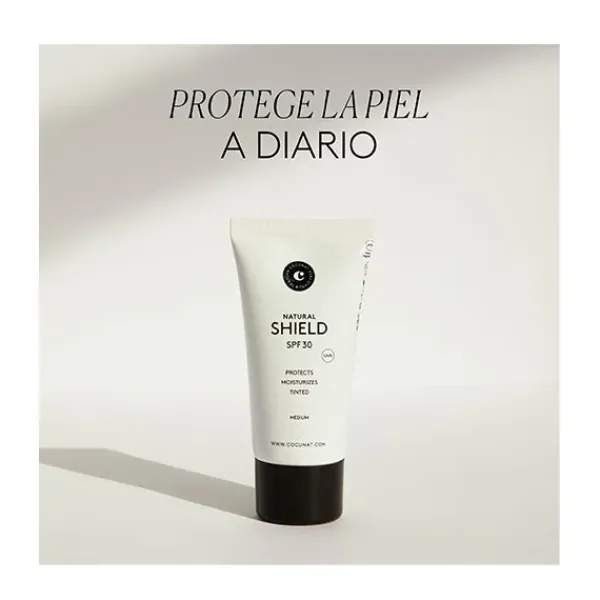 NATURAL SHIELD SPF 30 es el fotoprotector solar 2 en 1 efecto maquillaje con color, perfecto para un uso diario. En un solo gesto, te proporciona protección y efecto buena cara.