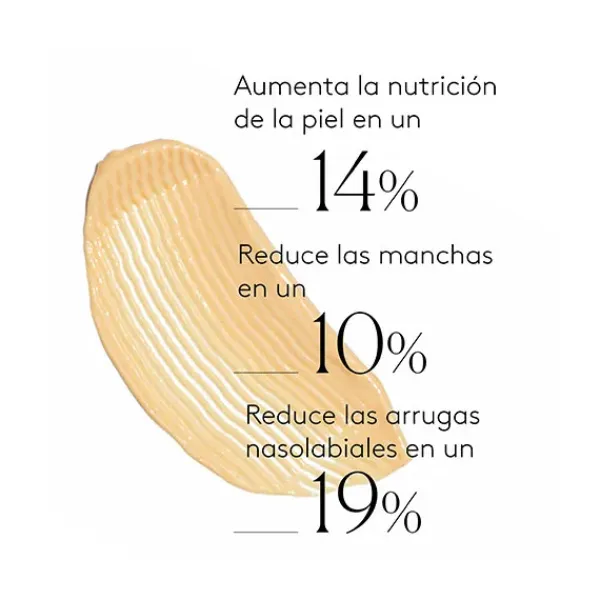 aumenta la nutrición de la piel en un 14%, reduce las manchas en un 10%, estimula la producción de colágeno resultando una piel más firme y elástica.